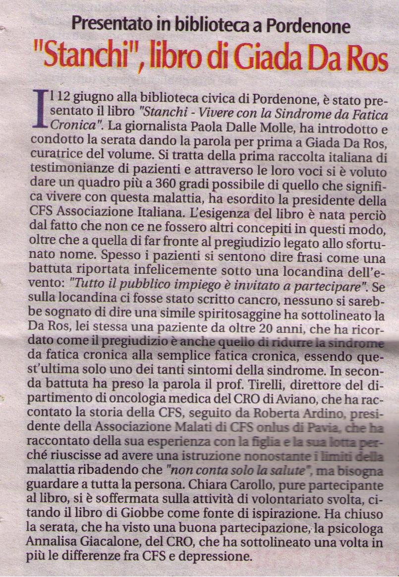 invalidante. Mi auguro che tutto abbia buon fine e i pazienti con CFS